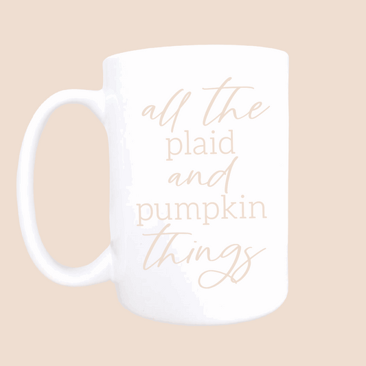 15oz All the plaid and pumpkin things ceramic coffee mug, Fall mug, fall decor