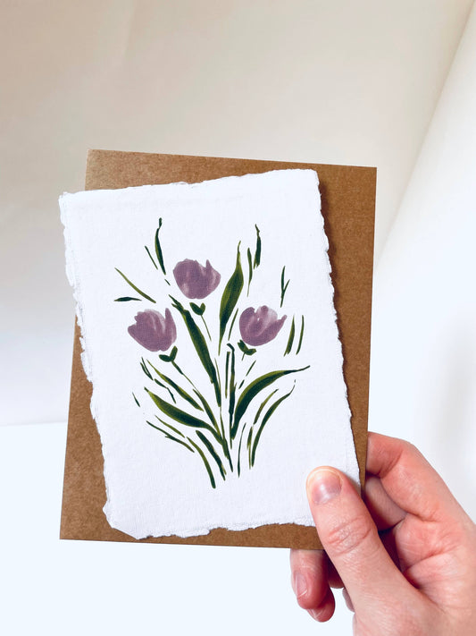 Handmade Cotton Card, Purple Tulip Prints, EcoFriendly Cards