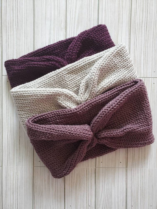 Knotted Earwarmer, Knit Twisted Headband, Messy Bun Hat: Silver