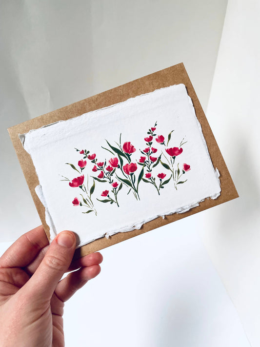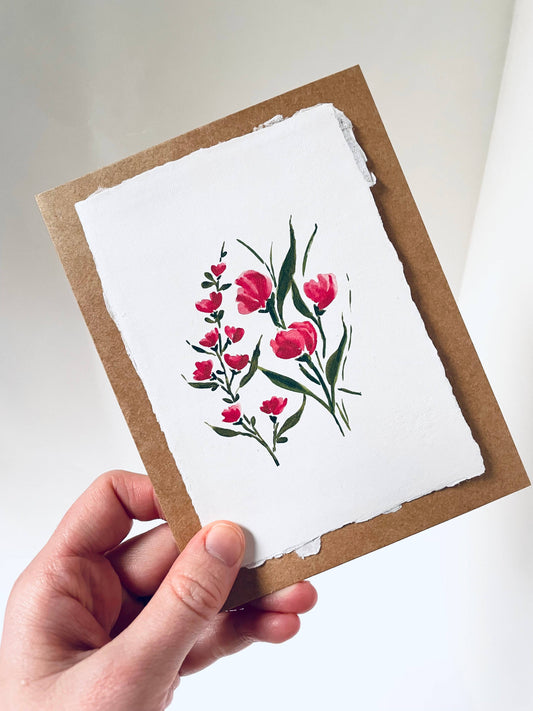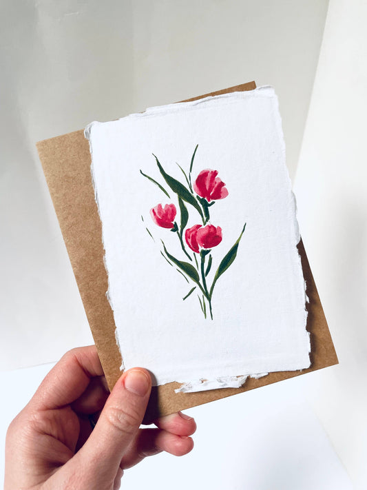 Handmade Cotton Card, Magenta Tulips Print, EcoFriendly Card