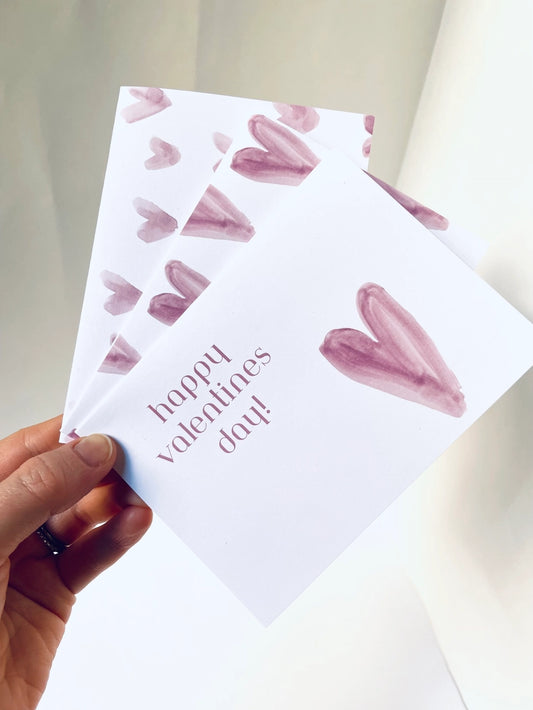 Hand Painted Mauve Happy Valentines Day Heart Cards