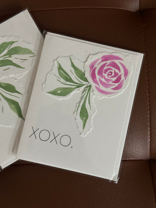 Handmade Cotton Card, Magenta Flora Prints, EcoFriendly Card