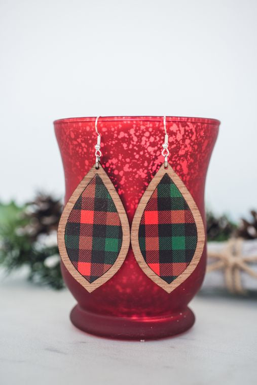 Christmas Plaid Inset Dangles - Holiday Winter Earrings