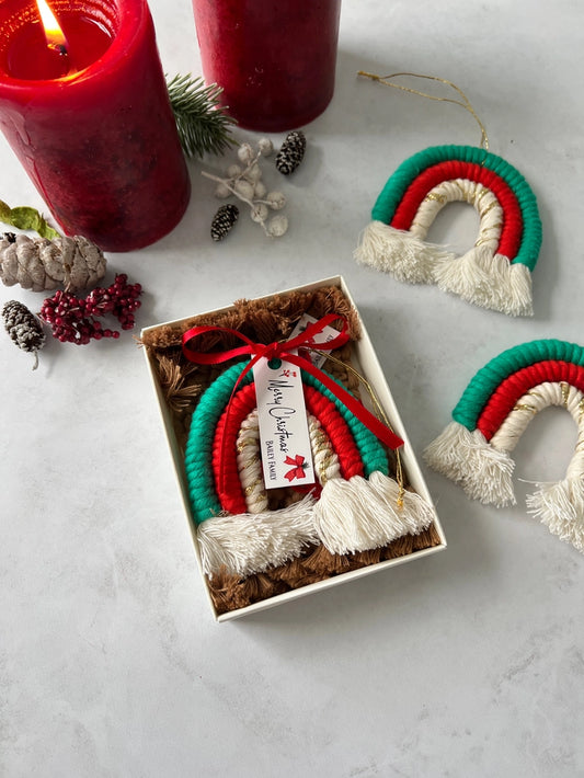 Rainbow Christmas Macrame Ornament