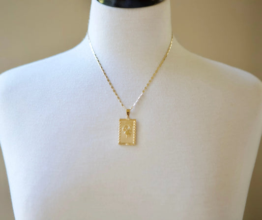 Rectangle Rose Pendant Necklace - 17" Length