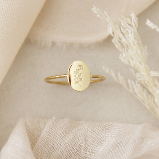 Oval Flower Ring, Isaiah 40:8: Yellow Gold