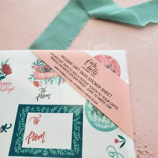 Mint Floral Christmas Stickers - Gift Tag Sticker Sheet