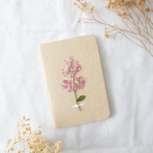 Handmade Pocket Size Pressed Pink Larkspur Flower Journal