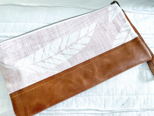 Small foldover clutch wristlet in white with black farmhouse stripe