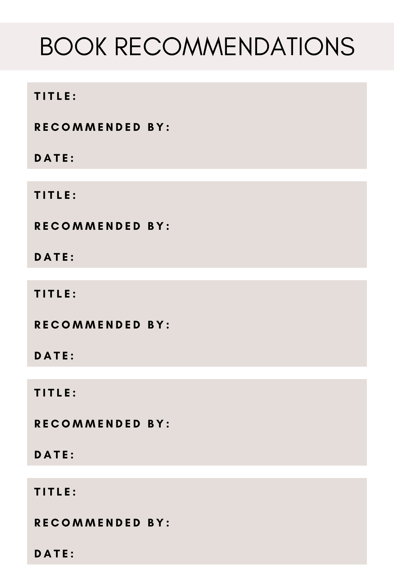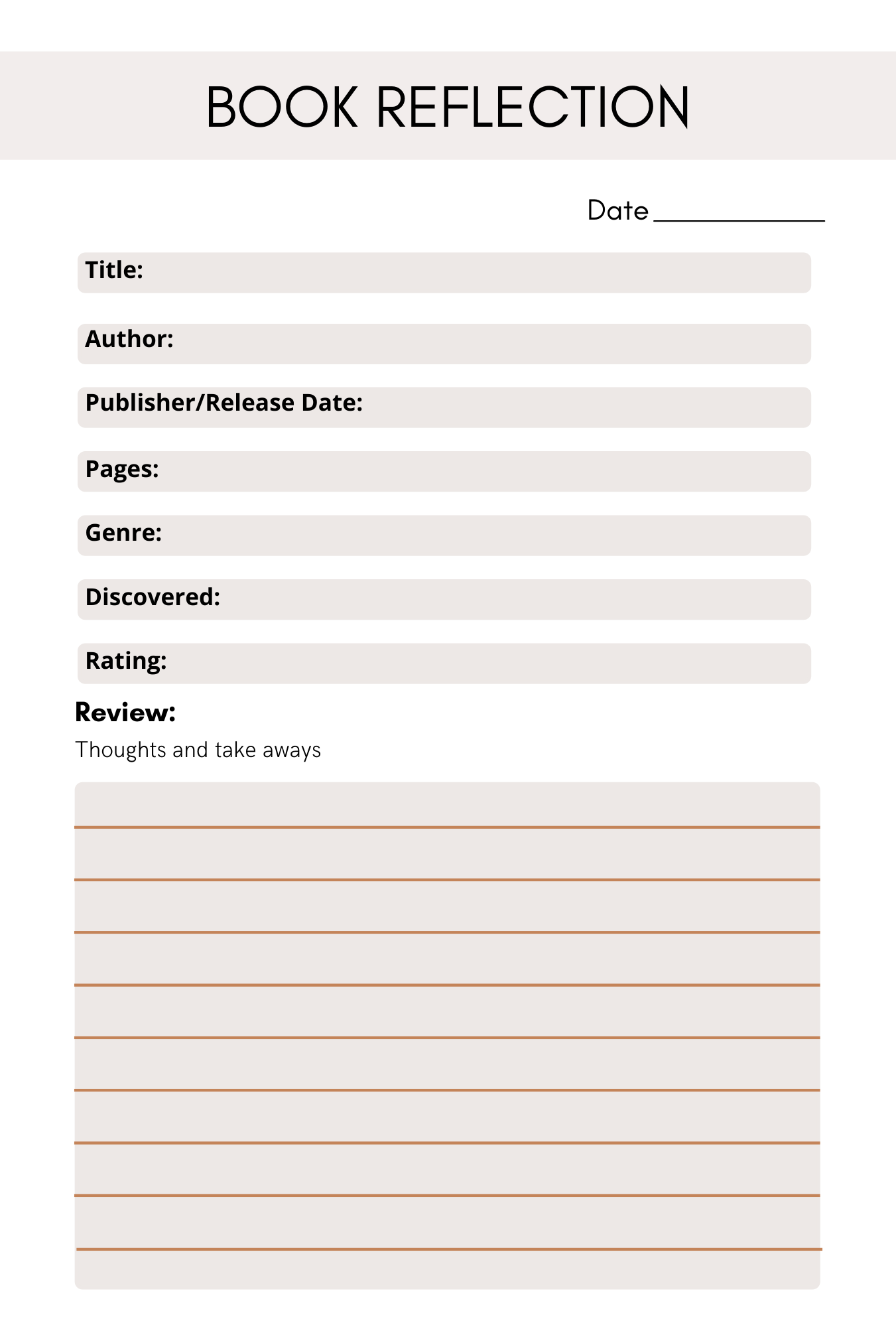 Keep track of your books and book reviews with this reading journal. There are 75 pages for book reviews with a full page on the back for continued writing. there are also several pages for your DNF list, bookish buddy contacts, book recommendations and monthly reading goals! This book reviews journal is perfect for every reader and bookworm and makes the perfect gift for yourself or the reader in your life!