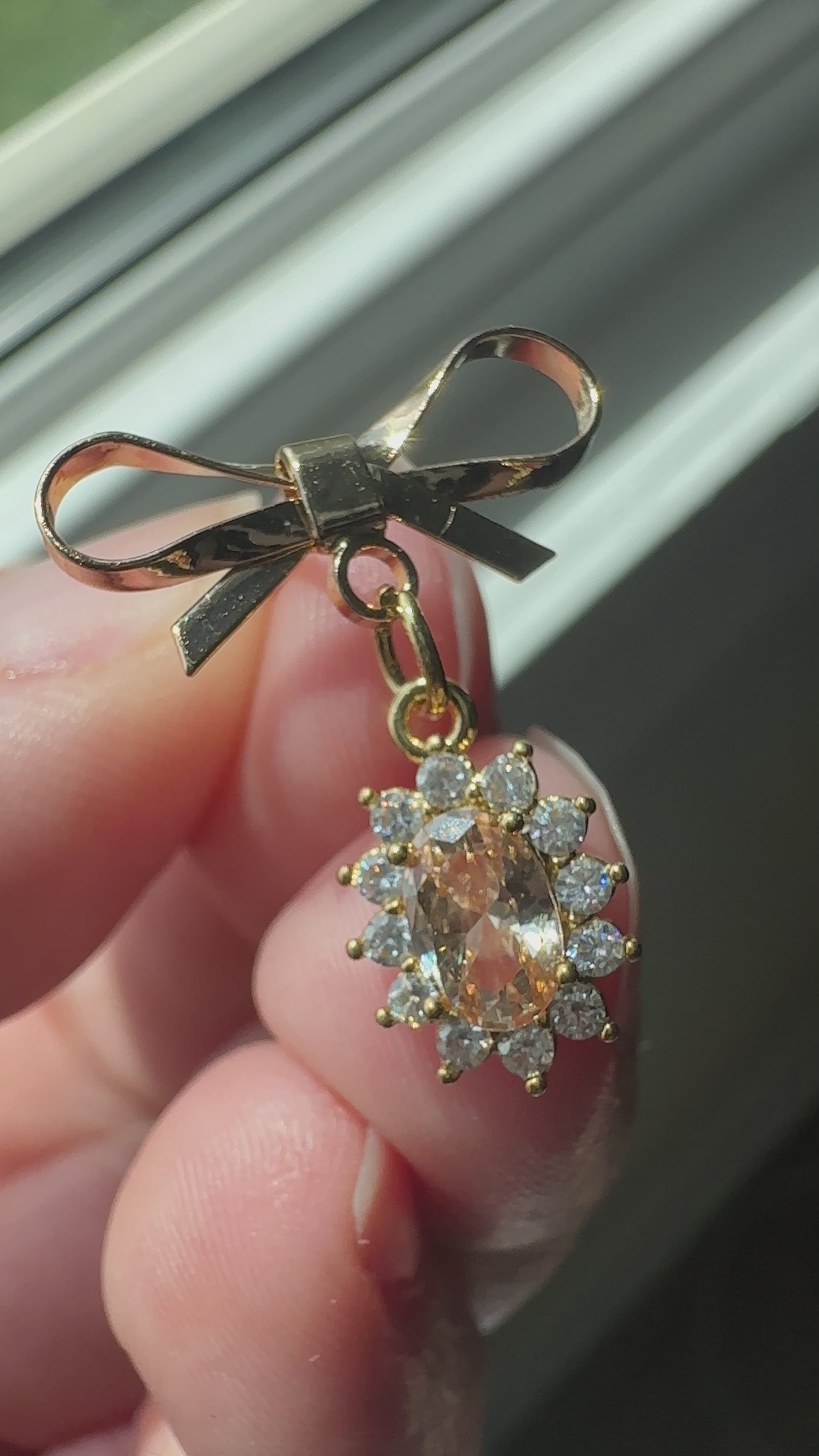 Gold plated brass, 9 mm charm, approximately 1 in in length total
