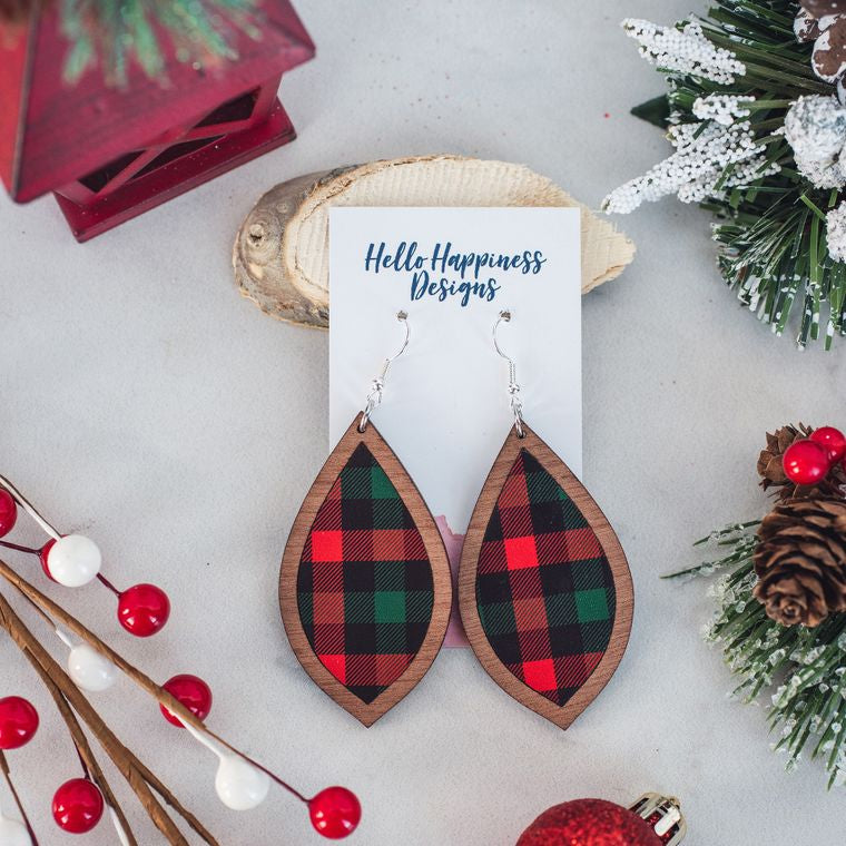 Christmas Plaid Inset Dangles - Holiday Winter Earrings