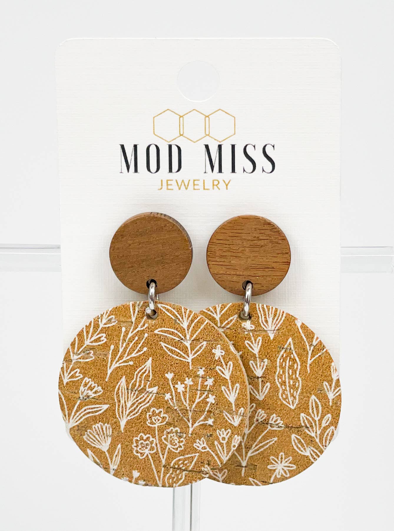 2-inch Round Cork + Leather attached to a 10mm natural wood accent. Lead and nickel free. Please note that due to different grains in the wood and cork, not all pieces will match 100% but we do our best to make sure they look compatible.