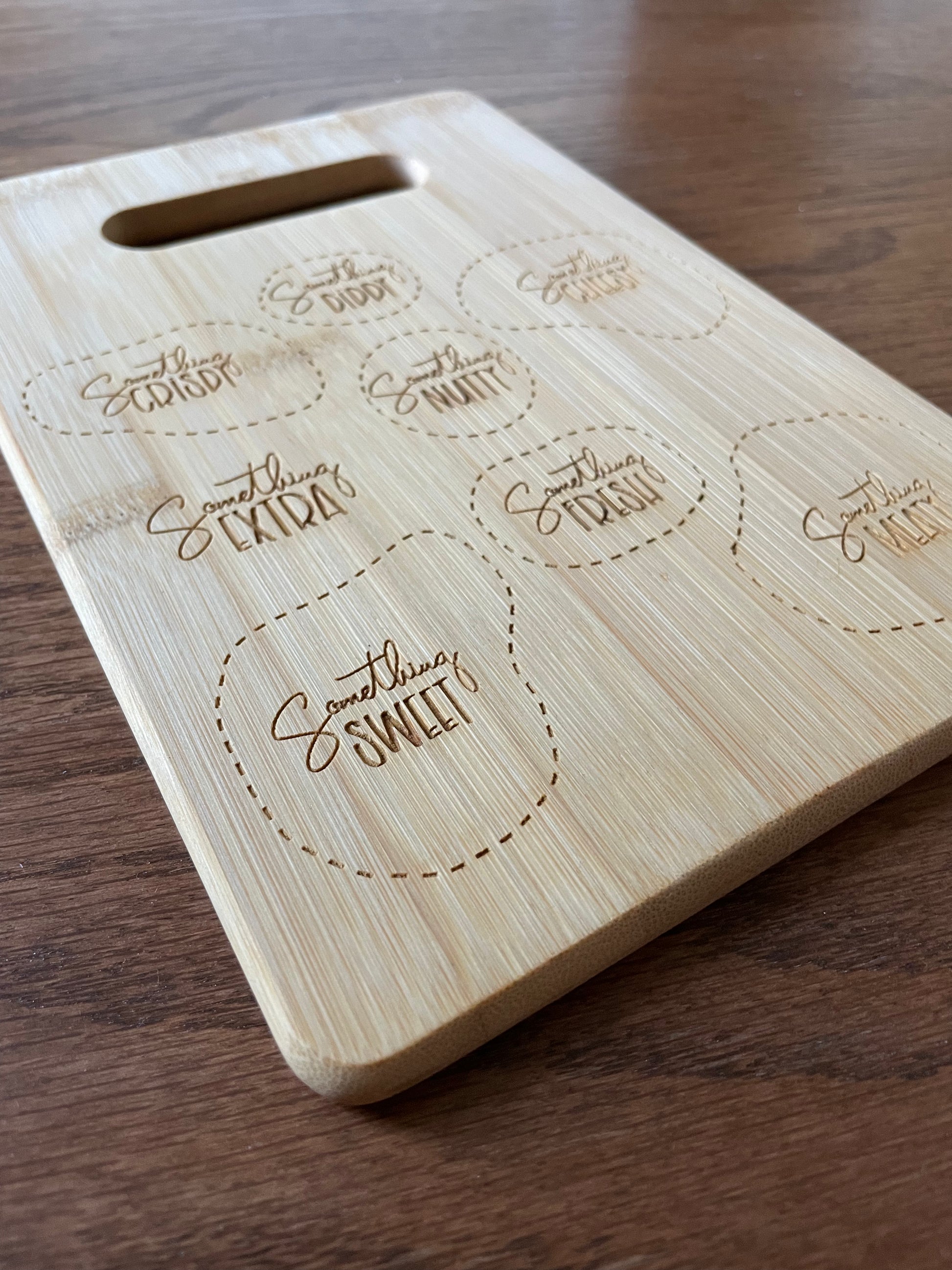 Made from bamboo wood. Available in 6x9x.25. For care and cleaning, wipe with a damp cloth. Cooking grade mineral oil can be used to bring back original shine as needed. Please note: Each board coloring will vary per piece. Some boards may engrave darker than others, but the engraving depth will remain the same due to the same settings being used. May contain knots and staining due to the handmade nature of the wood. * Color is lighter as shown in second photo