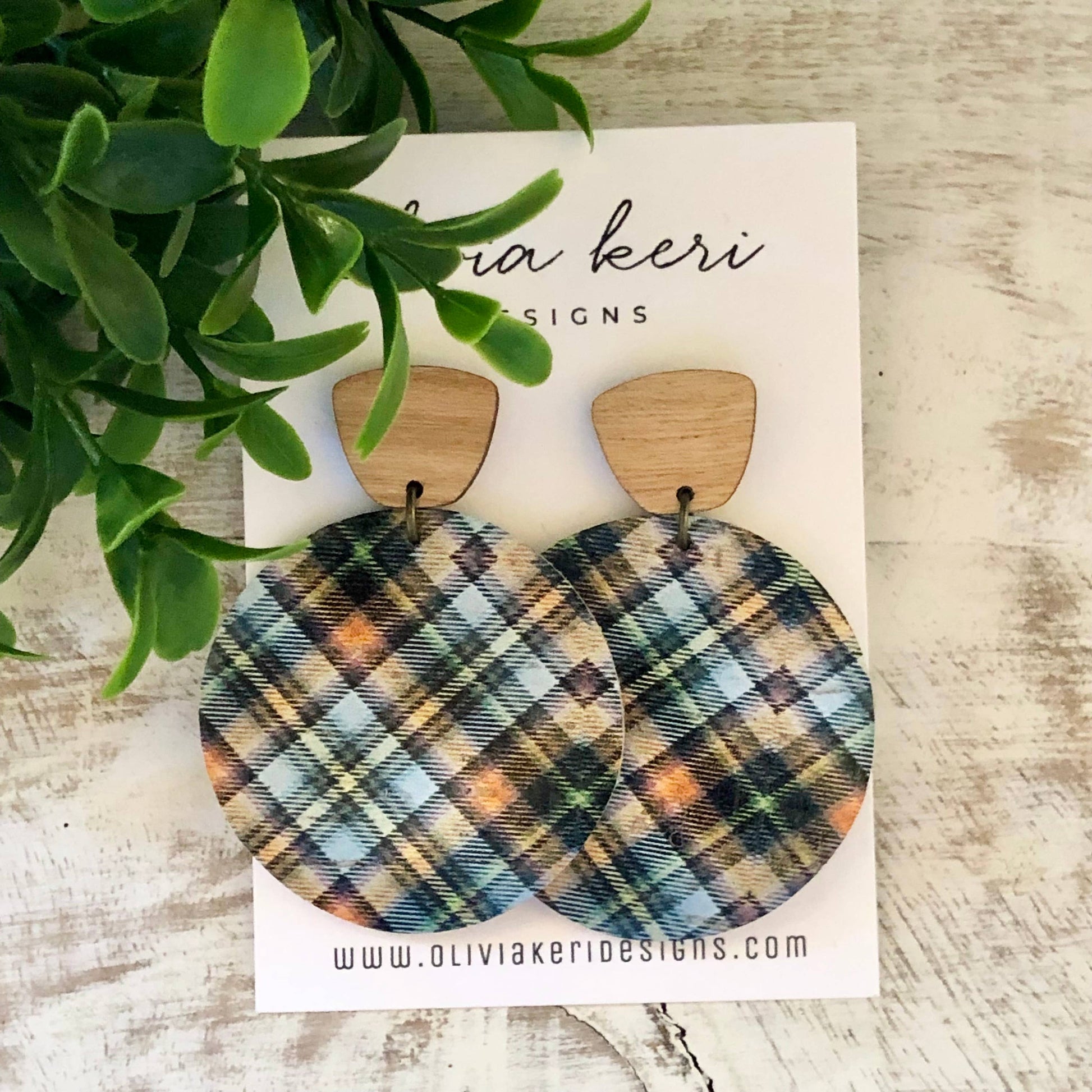 Beautiful round earrings made with genuine cork on leather featuring a wood accent. Lightweight and gorgeous! This listing is for one pair of earrings measuring 1.75” x 2.25". Ear hooks add approximately .5 inches in length to the overall design. DETAILS *Genuine Cork Leather *Antique Bronze Nickel-Free Wire *Cherry Wood Accent