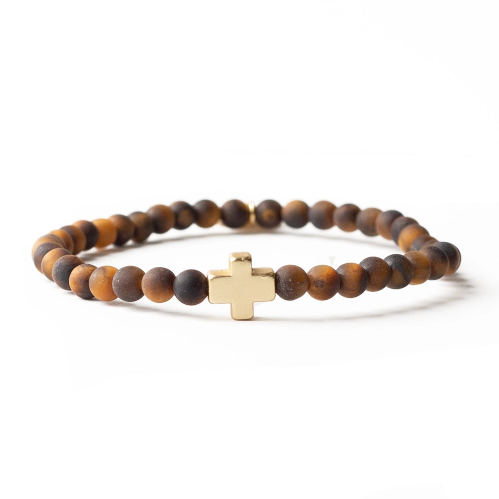 Faith Over Fear Cross Bracelet, 4mm-Tiger Eye