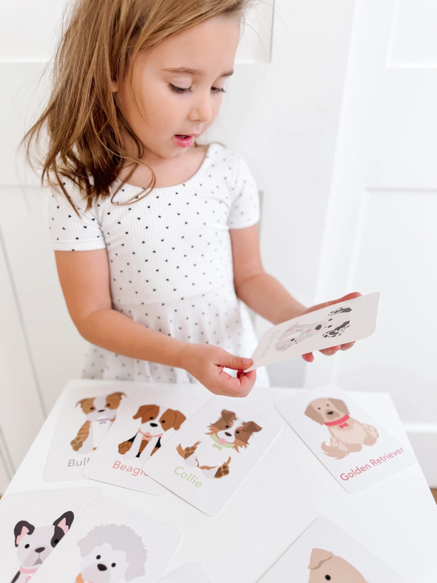 Dog BreedsĀ 10 Dog Breed Flashcards Each card features a bright, vibrant illustration that will help little ones identify each breed easily. They're an ideal way to develop your child's memory and recognition skills in an engaging way.