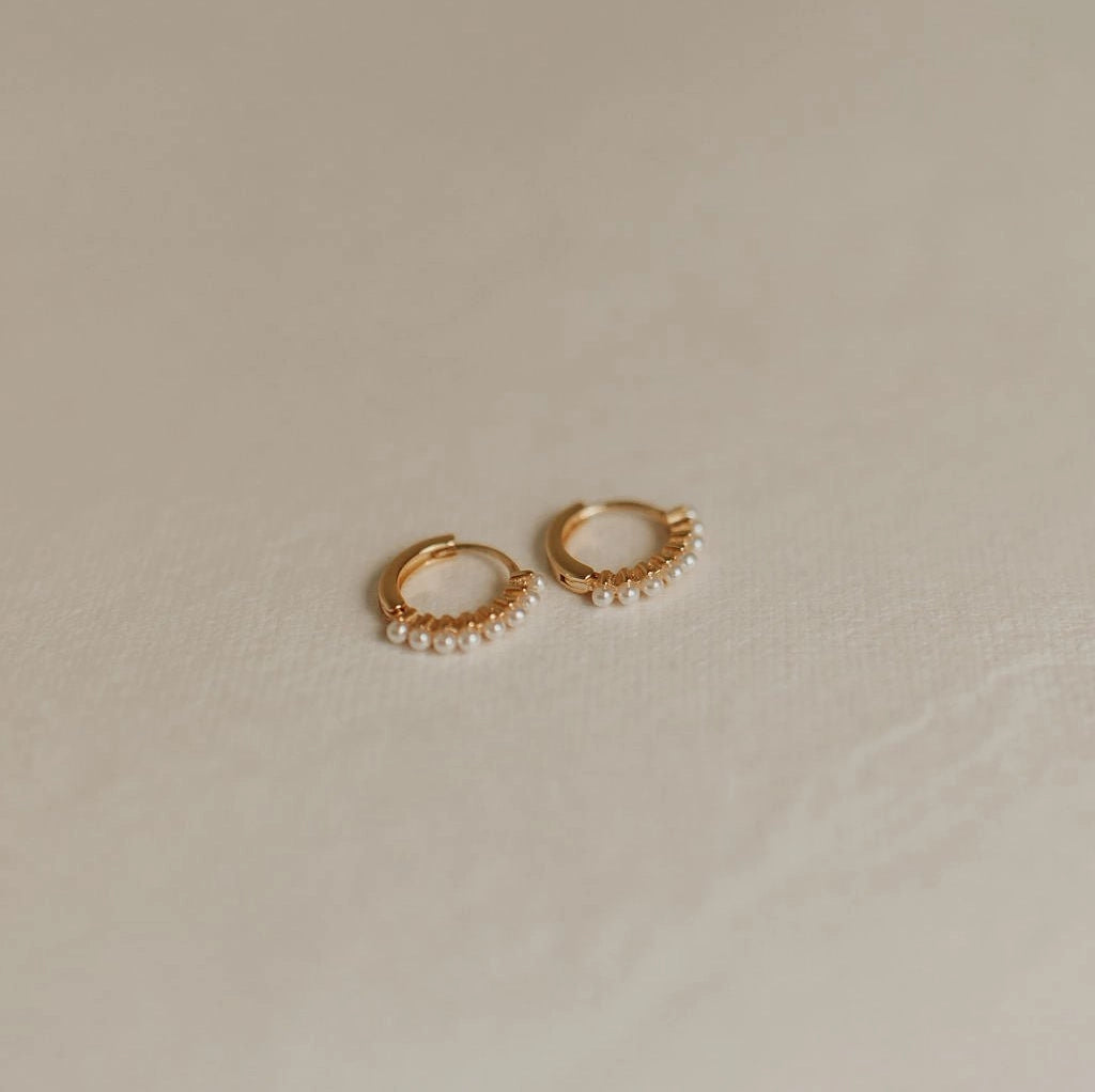 The Grace Pearl Hoops are the perfect accessory to complete any outfit. They come in gold vermeil and are hypoallergenic, tarnish and wear resistant, and perfect for sensitive ears. They measure approximately 11mm and are perfect for a first piercing or in an earring stack.