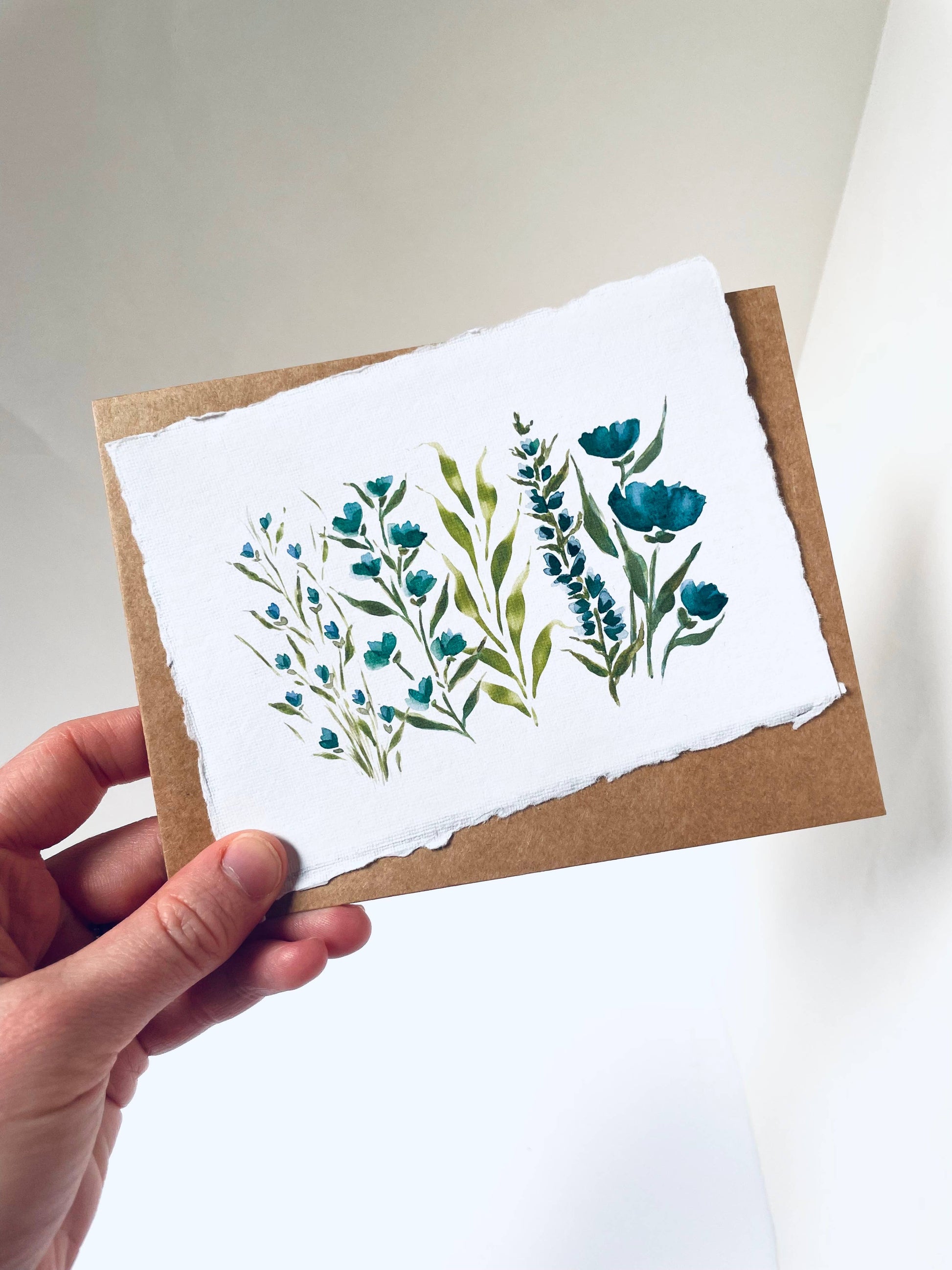 Handmade Cotton Card, Blue Floral Prints, EcoFriendly Card
