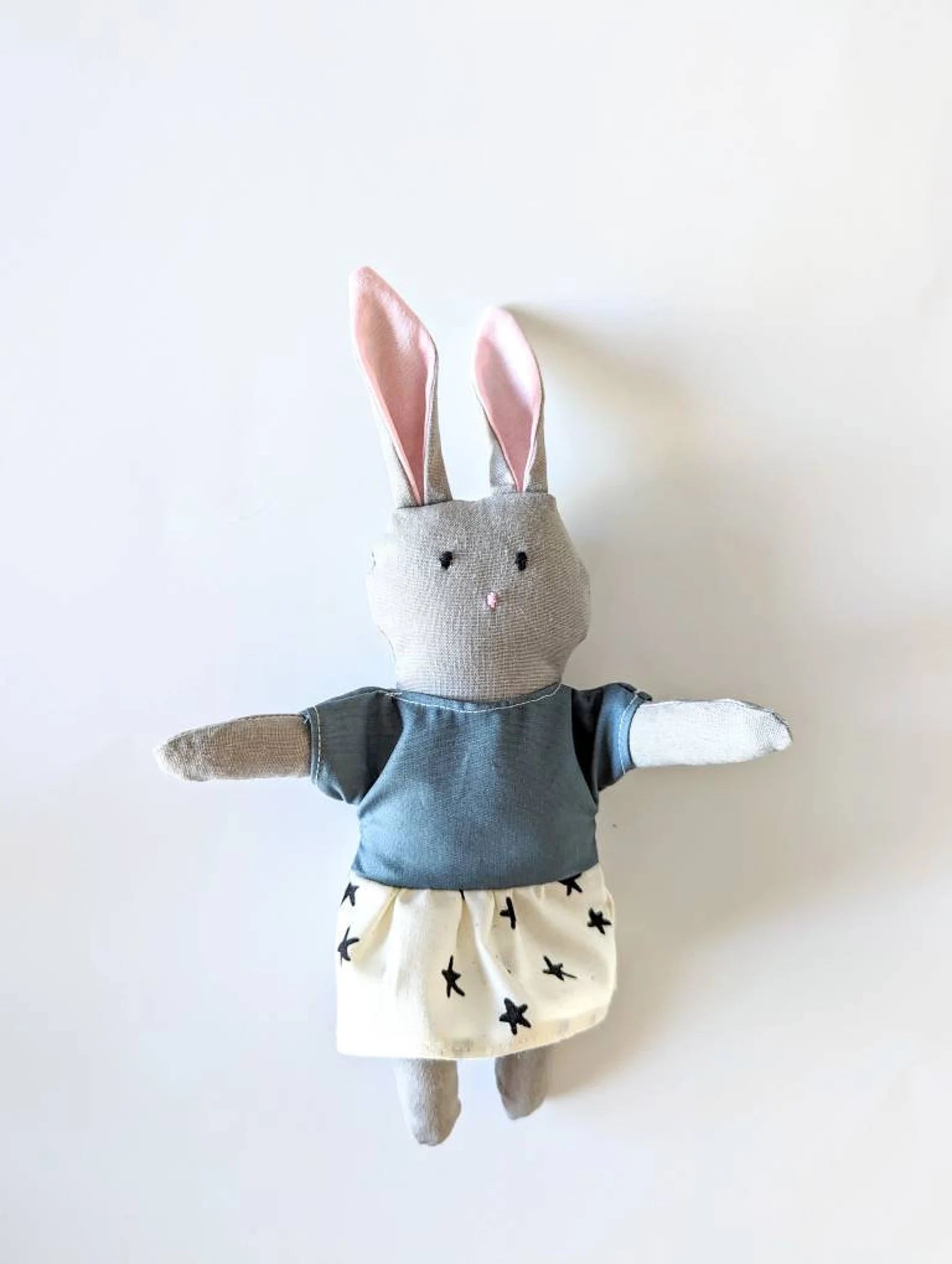 These handmade Dolls are each unique and made with love just for your little one! They are the perfect size for little hands. Each doll comes with an outfit and a bag.