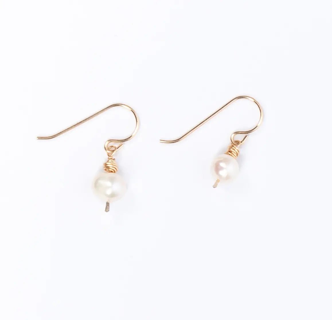 ABOUT THIS ITEM: Dainty gold earrings with freshwater pearls and hammered detail add a touch of elegance to any outfit. Named after one of our refugee artisans from Afghanistan. SUSTAINABILITY AND VALUES: Women-founded and run brand. Designed by an all-female team in St. Louis, MO. 14k gold filled or sterling silver filled ear wires and findings sustainably-sourced in Albuquerque, NM. Hand-crafted by fairly paid, resettled refugee and immigrant women in St. Louis, MO. CARE AND QUALITY: 14k gold filled Freshwater pearls. Drop 3/4" Store with jewelry of the same tone (silver with silver, gold with gold). Gently polish with a jewelry polishing cloth as needed.