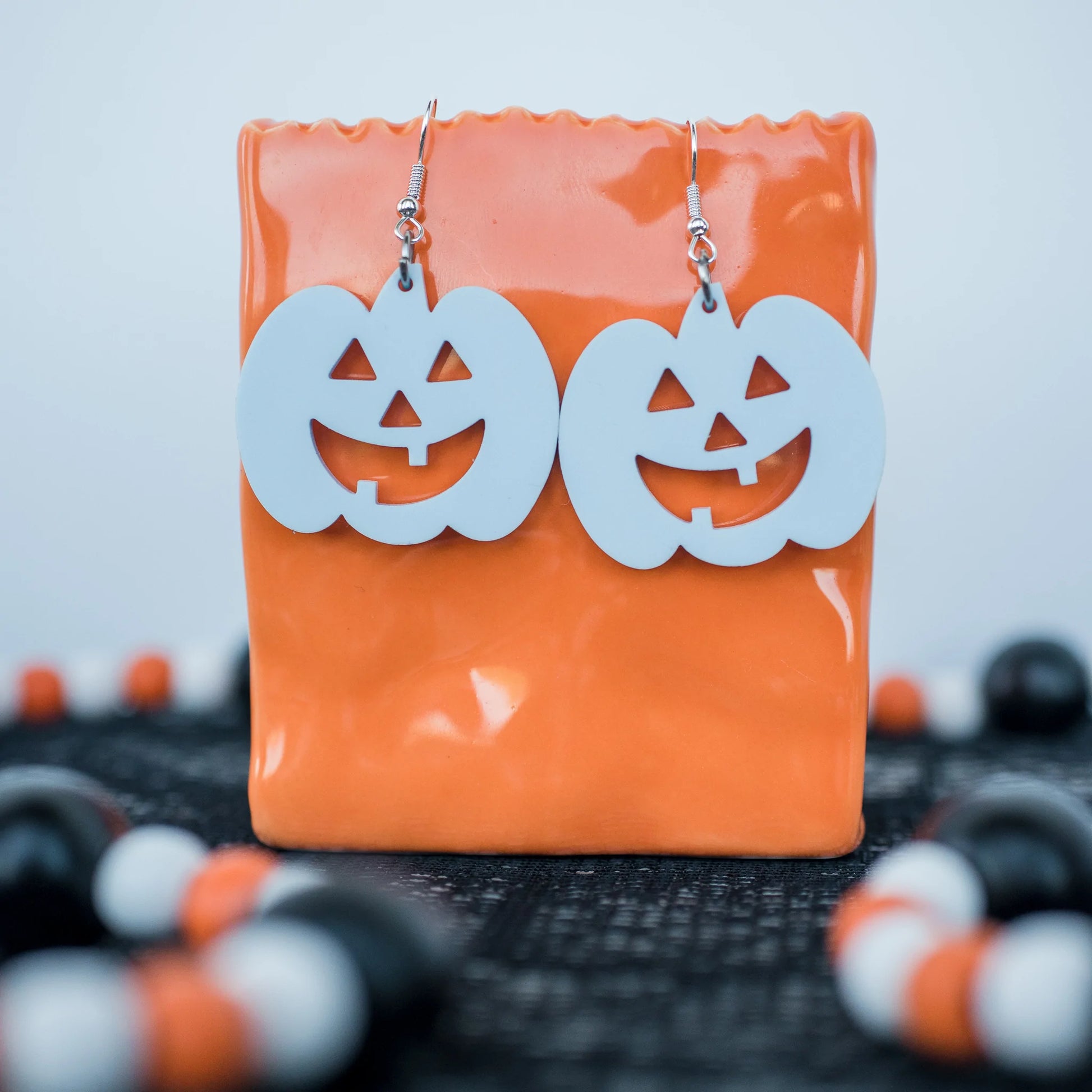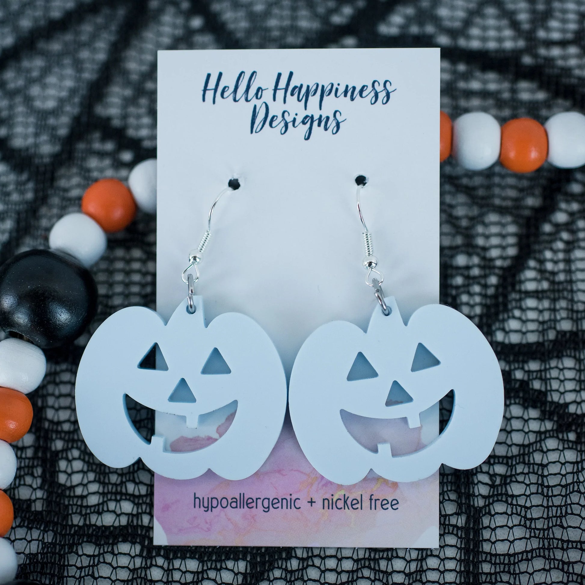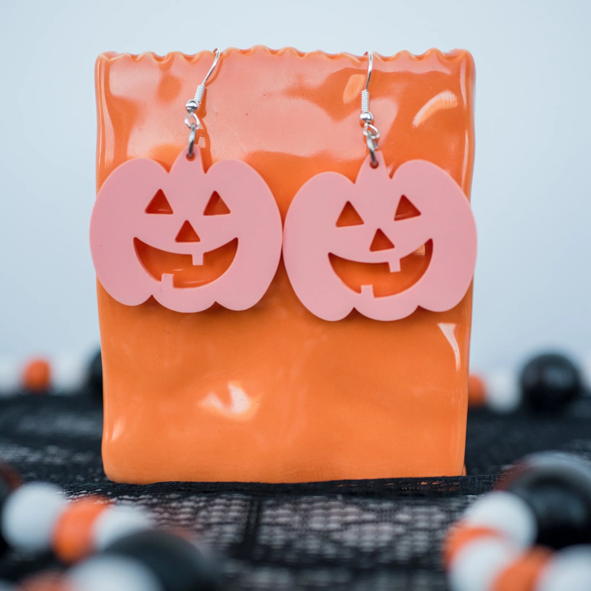 Pastel blue or pink jack o'lantern dangle earrings. 1.5 inch length. Great for sensitive ears!