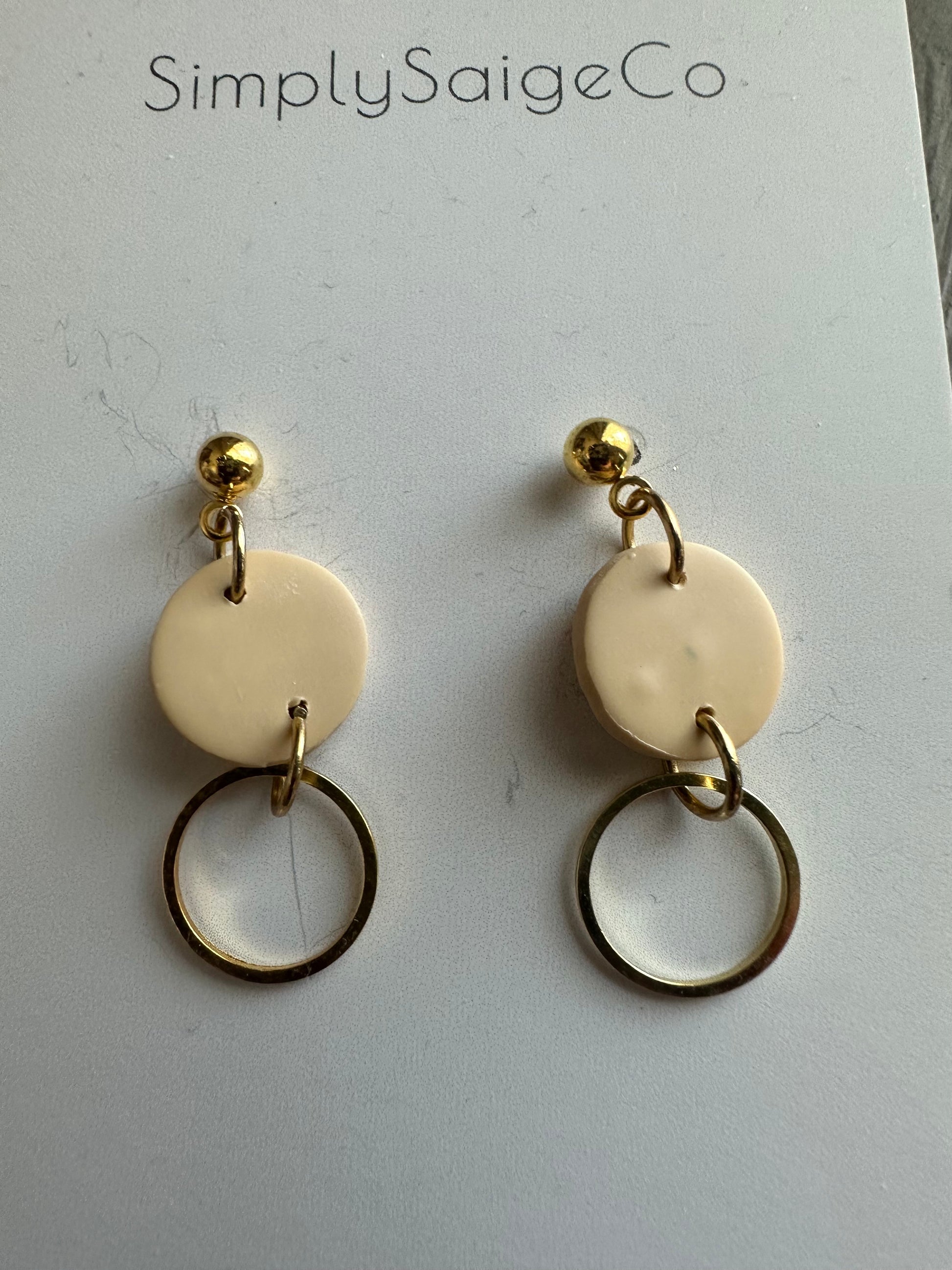 These mini tan circle earrings are paired with a small gold ring, if you're simple / neutral but still want something fun then these are perfect for you!