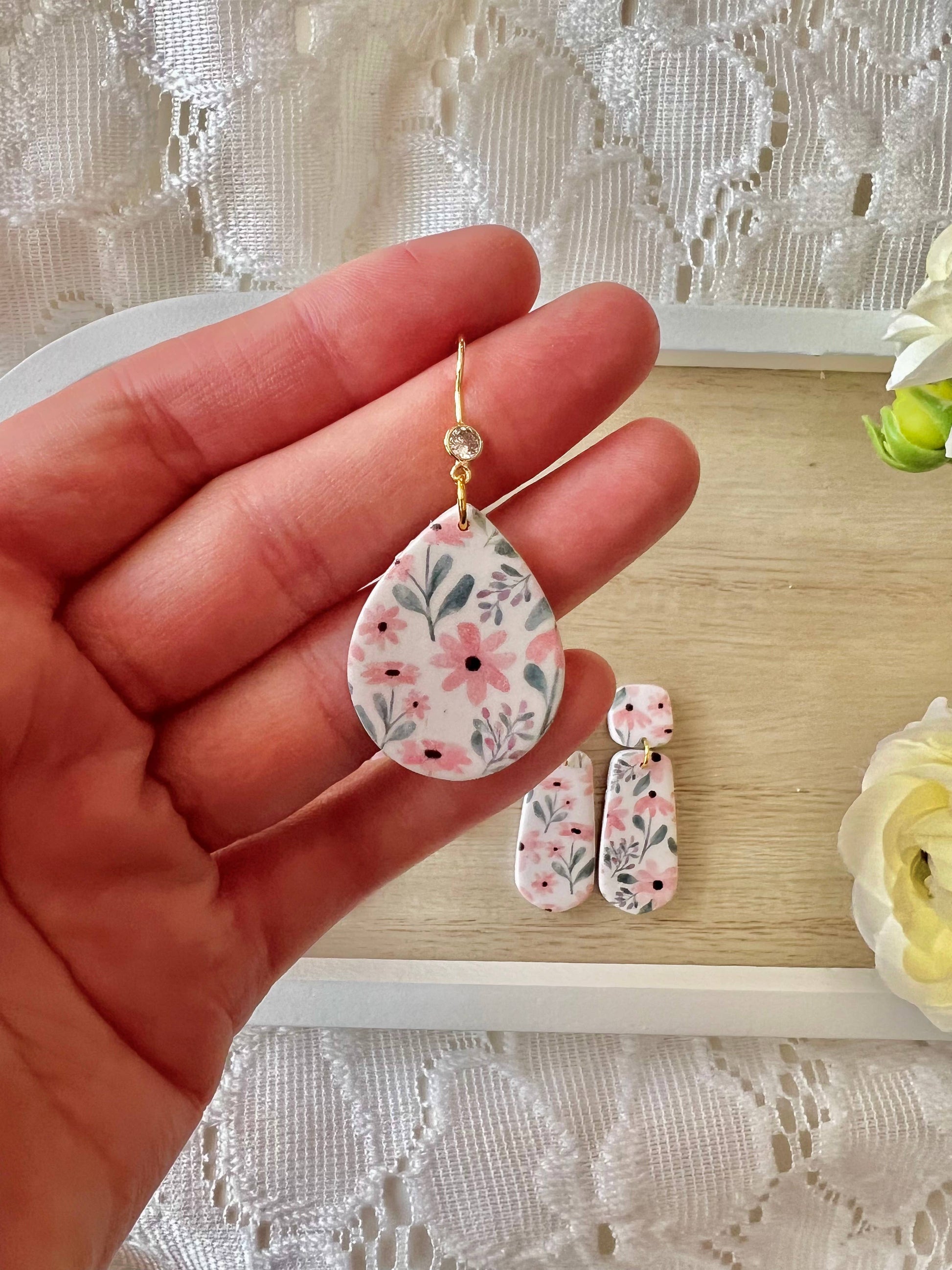 Blossom into style with our Pink Floral Clay Earrings! These teardrop earrings feature a delicate and feminine spring floral design, adding a touch of spring to any outfit. Perfect for those who love adding a pop of color and charm to their look.
