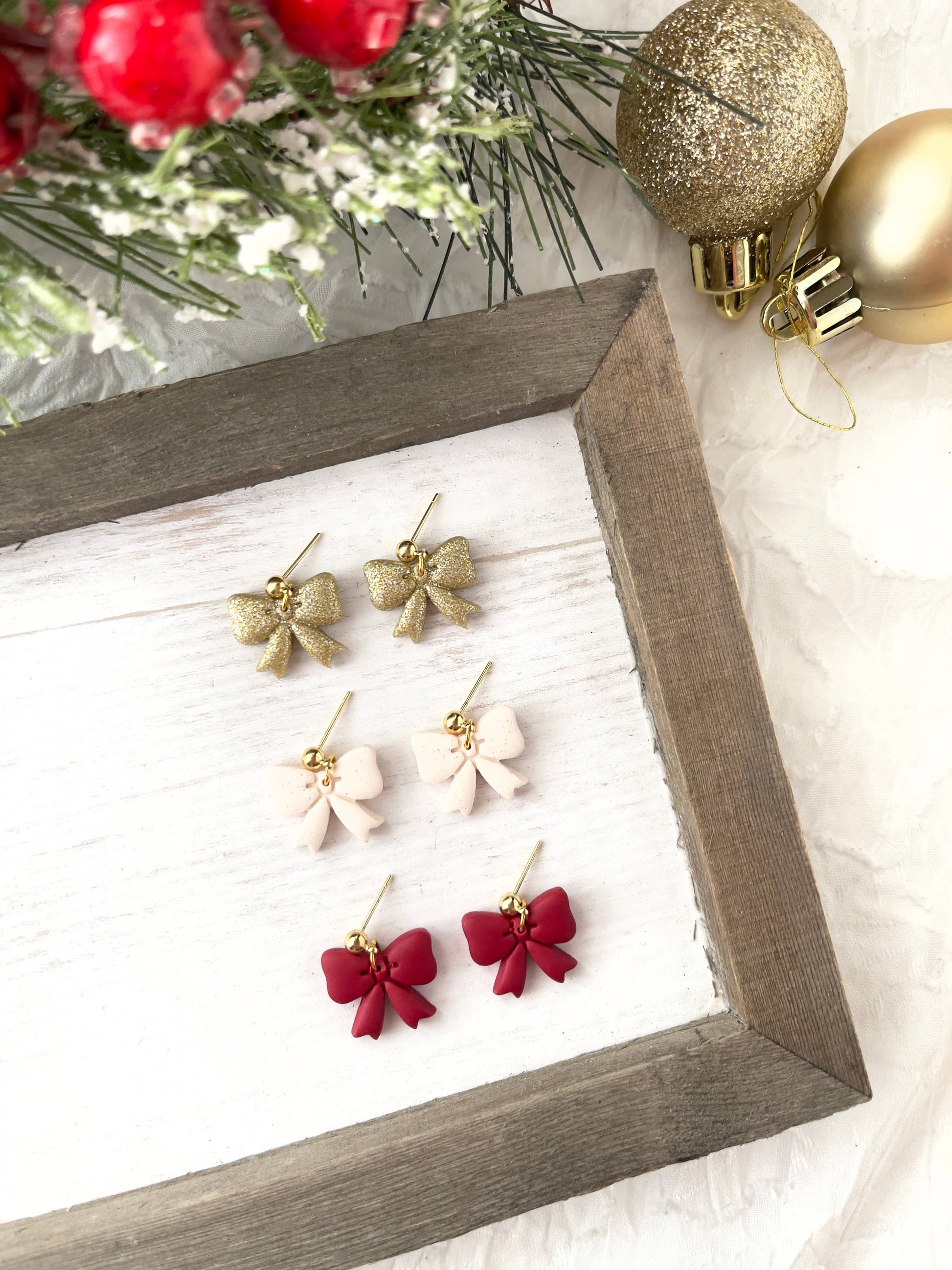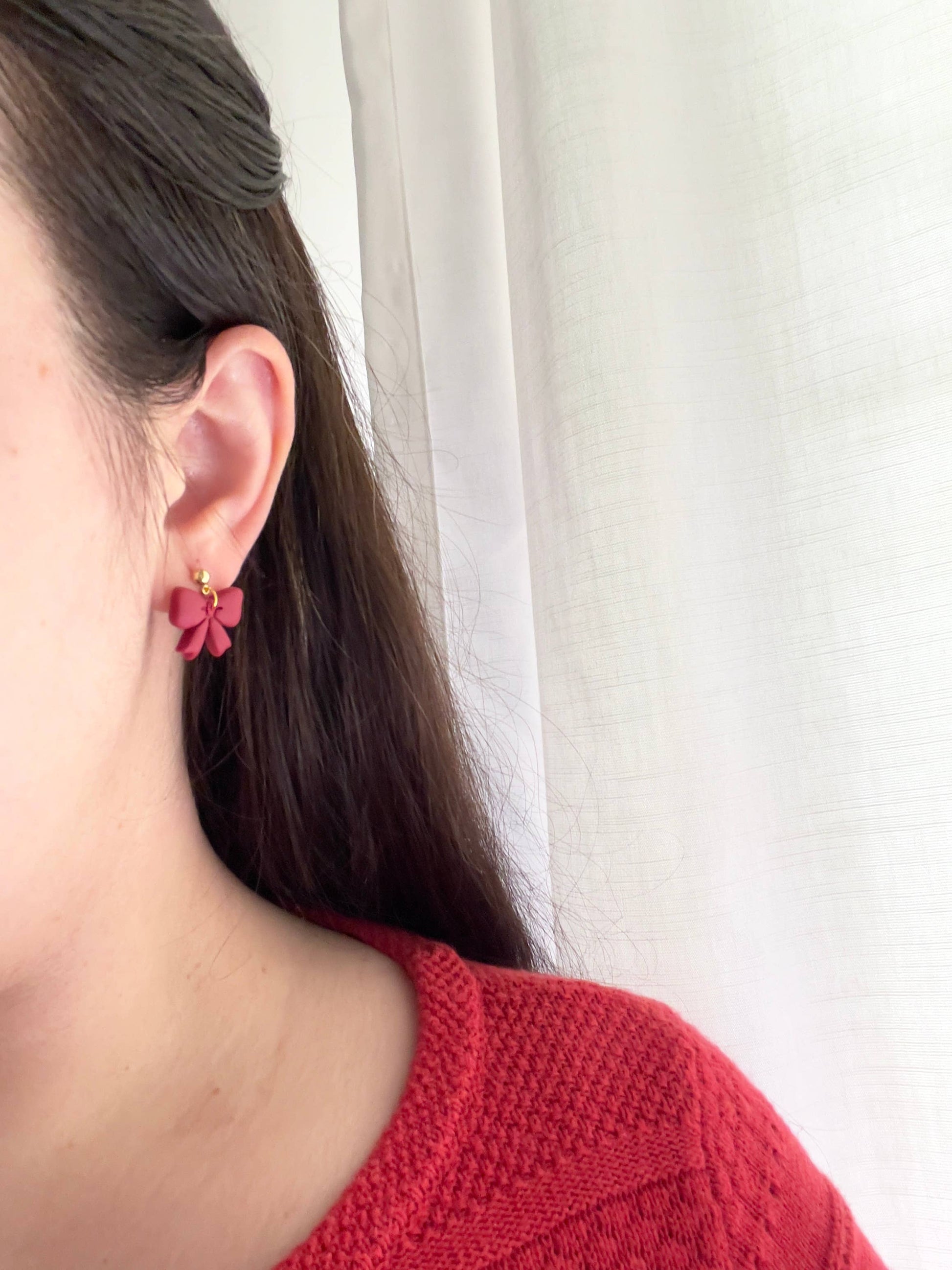 The Bow earrings - Unique & lightweight handcrafted polymer clay earrings to elevate your everyday! - All earring posts are stainless steel, surgical stainless steel, or gold plated. - Polymer clay earrings are durable, but should still be handled with care. - Gently clean