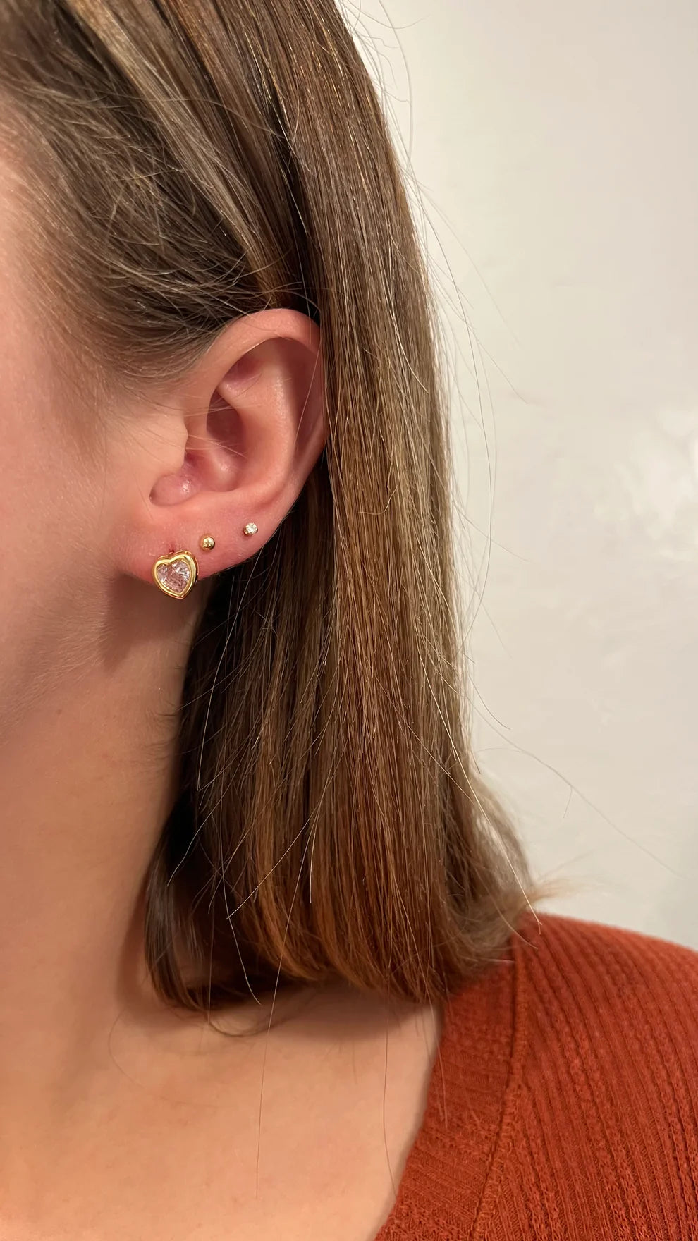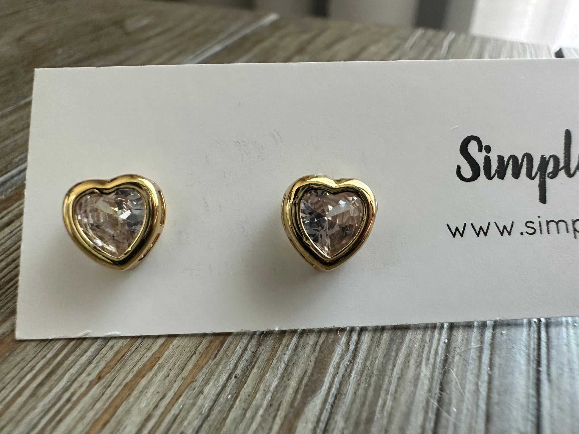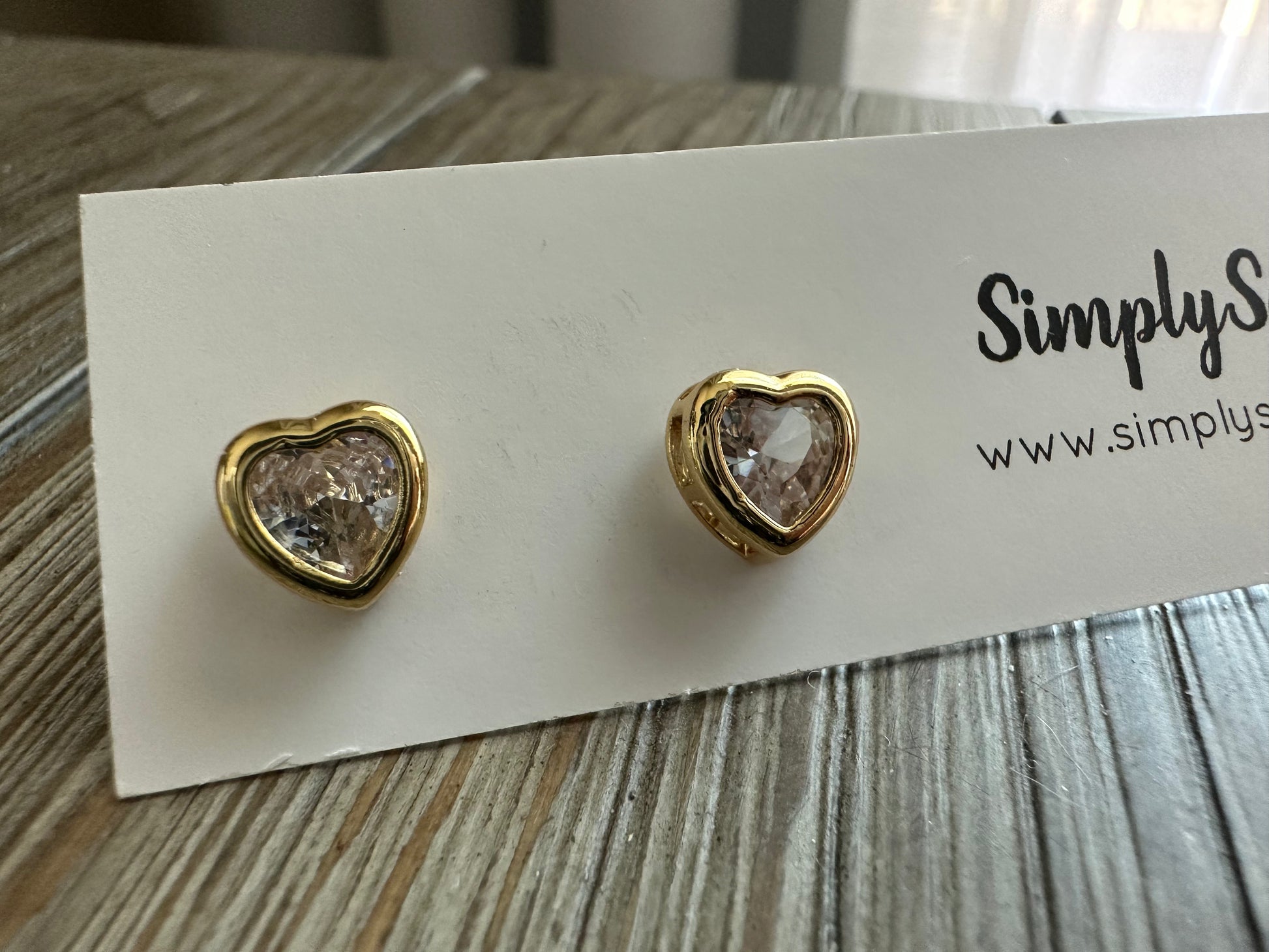 Mini rhinestone gold heart studs, super cute paired with other earrings or just themselves.