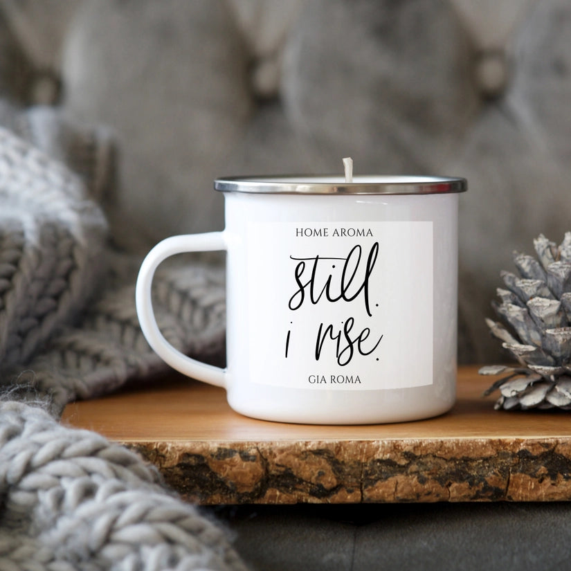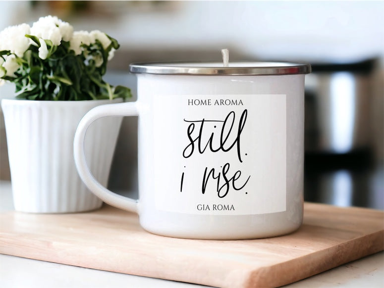 Enamel/Iron Mug filled candle (natural cotton wick and soy wax).