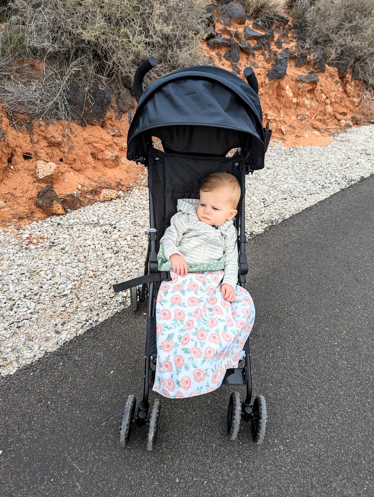 Say goodbye to blankets getting kicked off, rolled over, thrown, or even lost during walks. No matter how hard your little one kicks, this blanket is not coming off the stroller! The stroller buckle easily slides through the loops on the blanket keeping it in place and your baby warm the whole time your little one is in the stroller. The blanket is easy to put on and easy to take off as you buckle and unbuckle your child. Because the buckle slides under the blanket, you can still tuck the blanket around your child the way you normally would. The blanket is long enough to cover your baby but short enough that it won't drag on the ground.