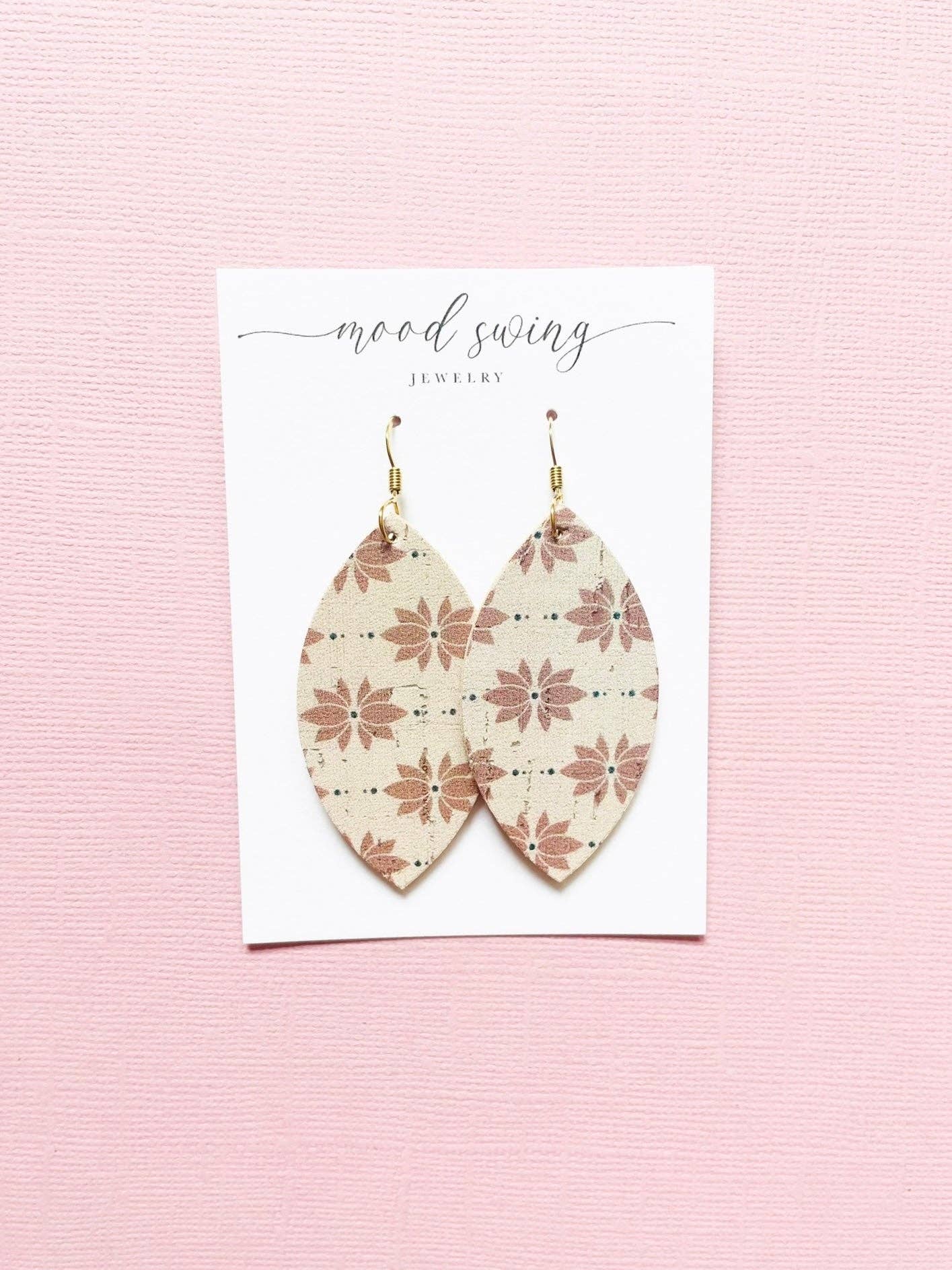 This cork backed leather earring features a neutral boho pattern. Hardware is gold stainless steel and earring length is approximately 2.5 inches. While we make every effort to photograph jewelry true to color, color may vary slightly due to your screen settings. Due to the handmade nature of this item, slight imperfections may occur and pattern placement on each earring may differ from picture. Cork is a natural product and may contain surface marks.