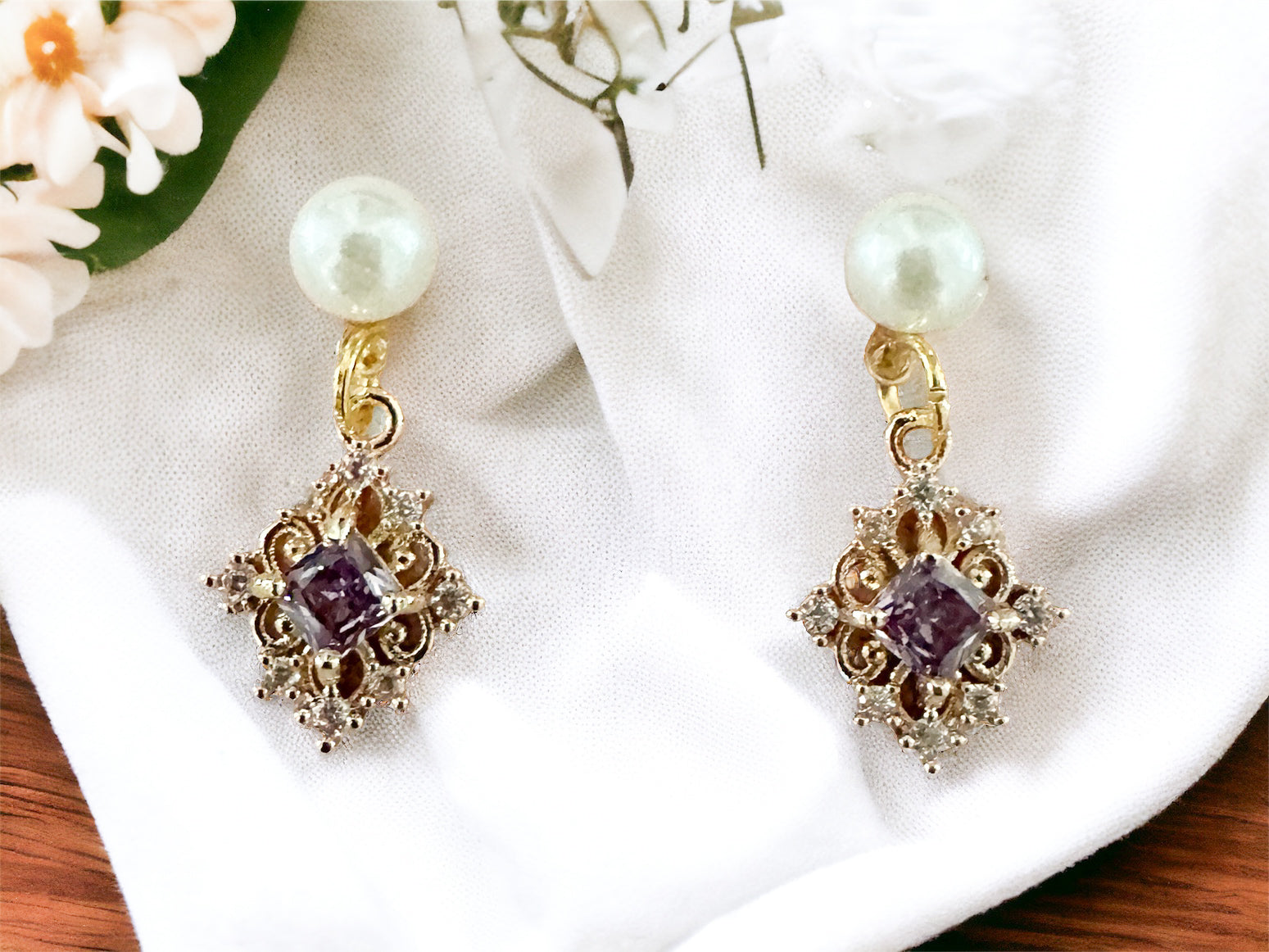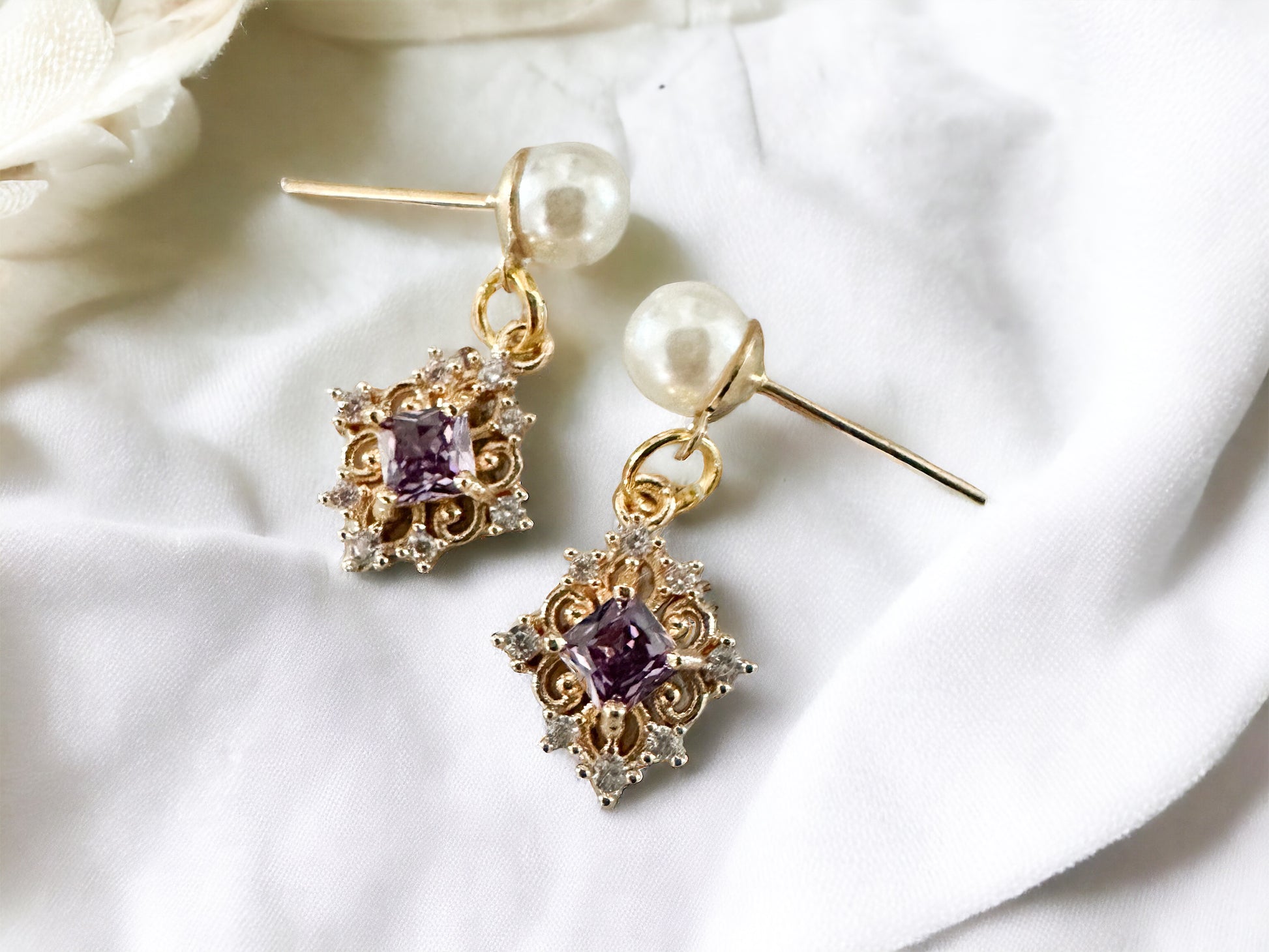 These stunning Taylor earrings feature a captivating combination of pearl and lavender hues that evoke a sense of elegance and tranquility. The perfect accessory for any outfit, these earrings will add a touch of sophistication and grace to your look. Elevate your style and inspire admiration with these beautiful earrings!